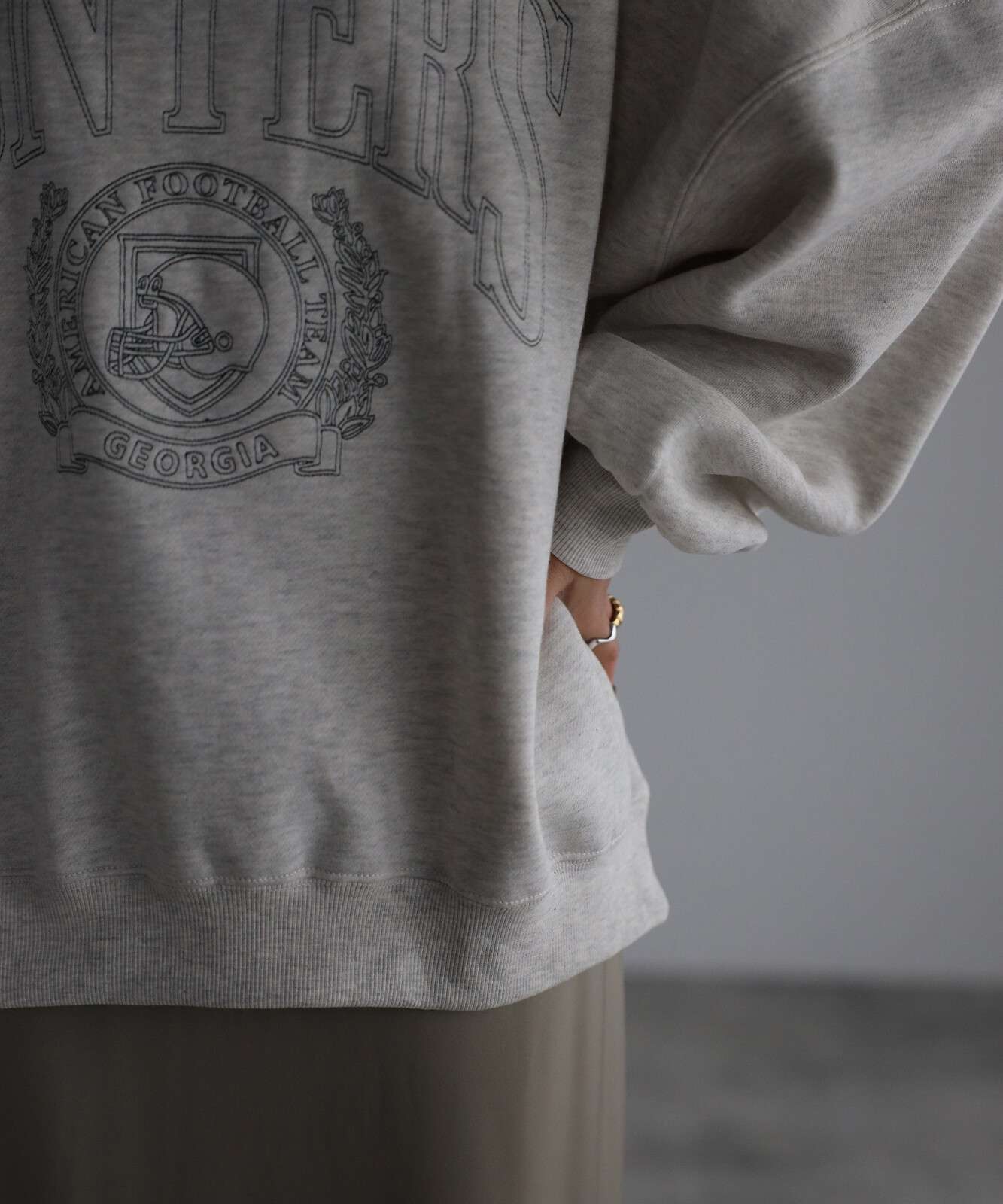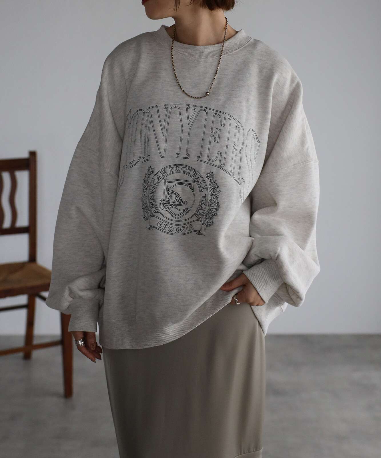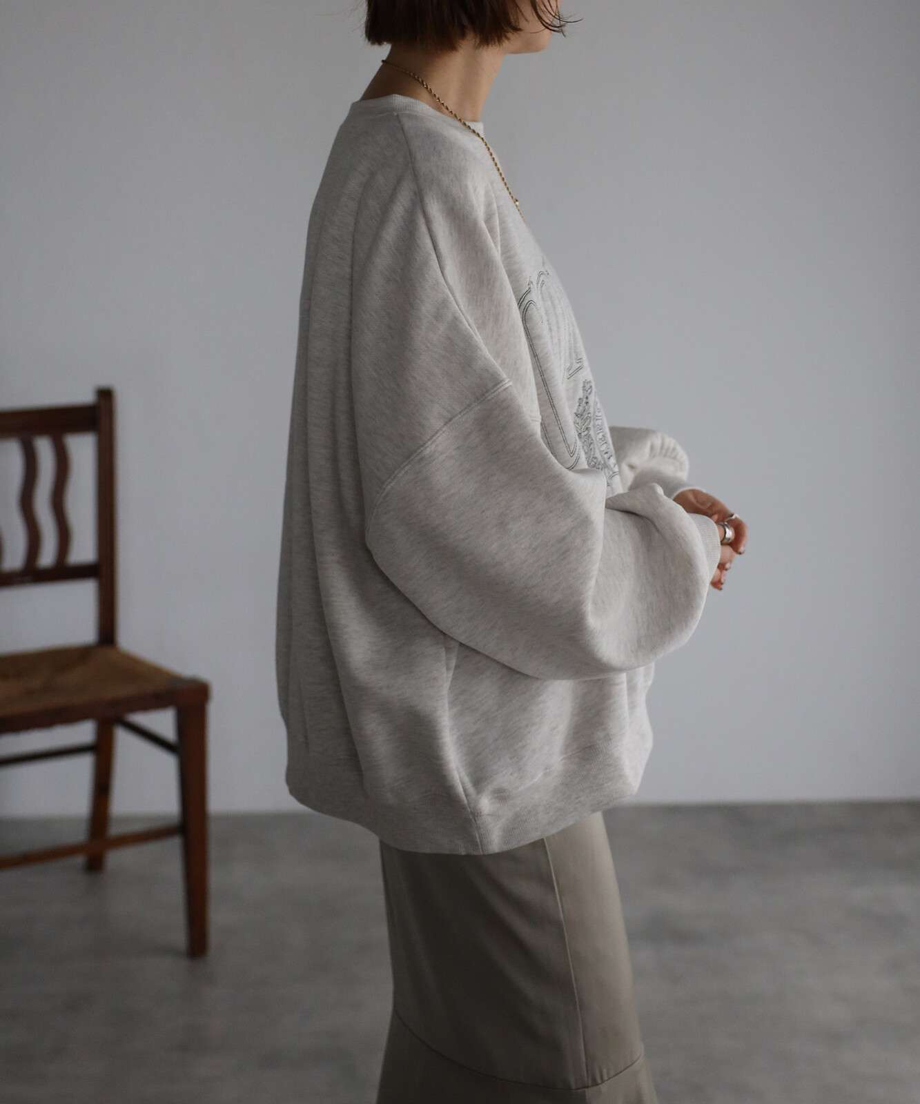 重ね着をしても気にならないゆったり感と、裏起毛で暖かさも抜群。