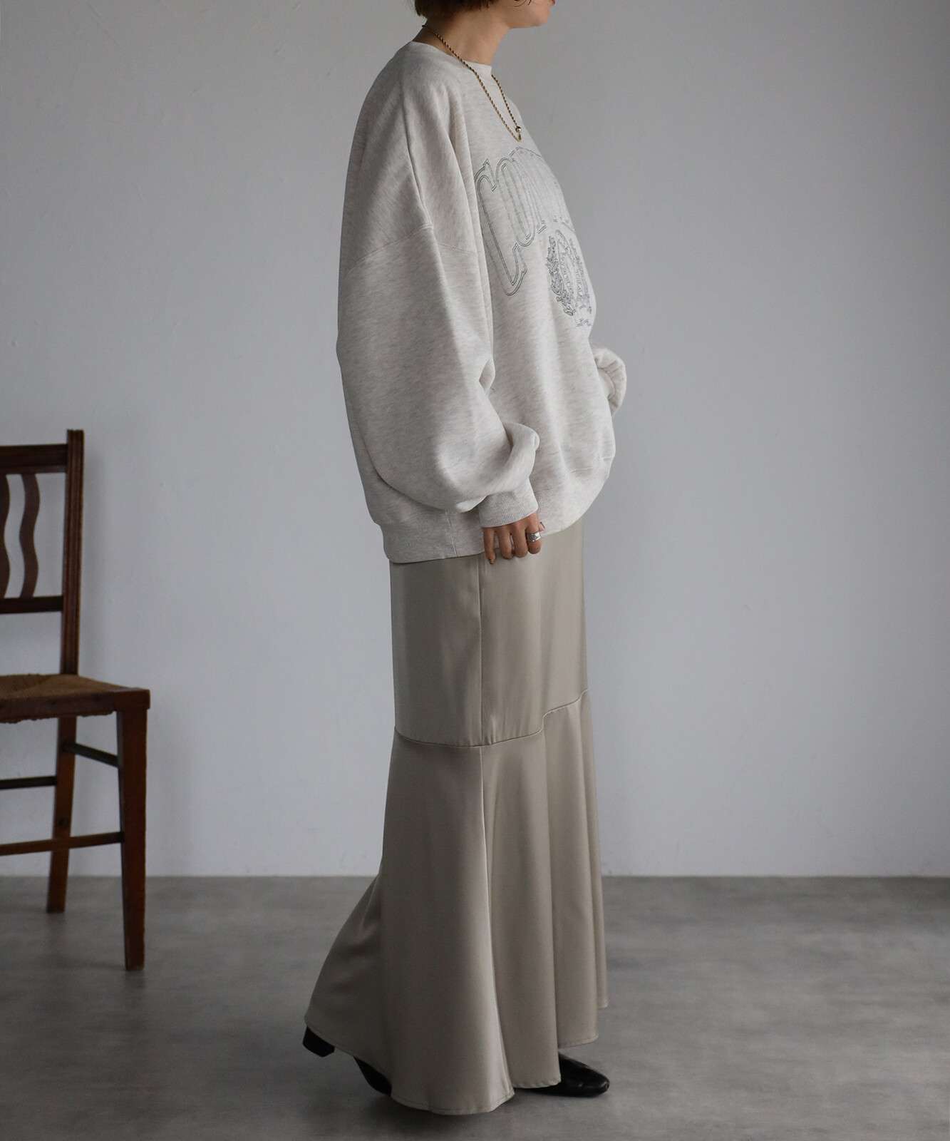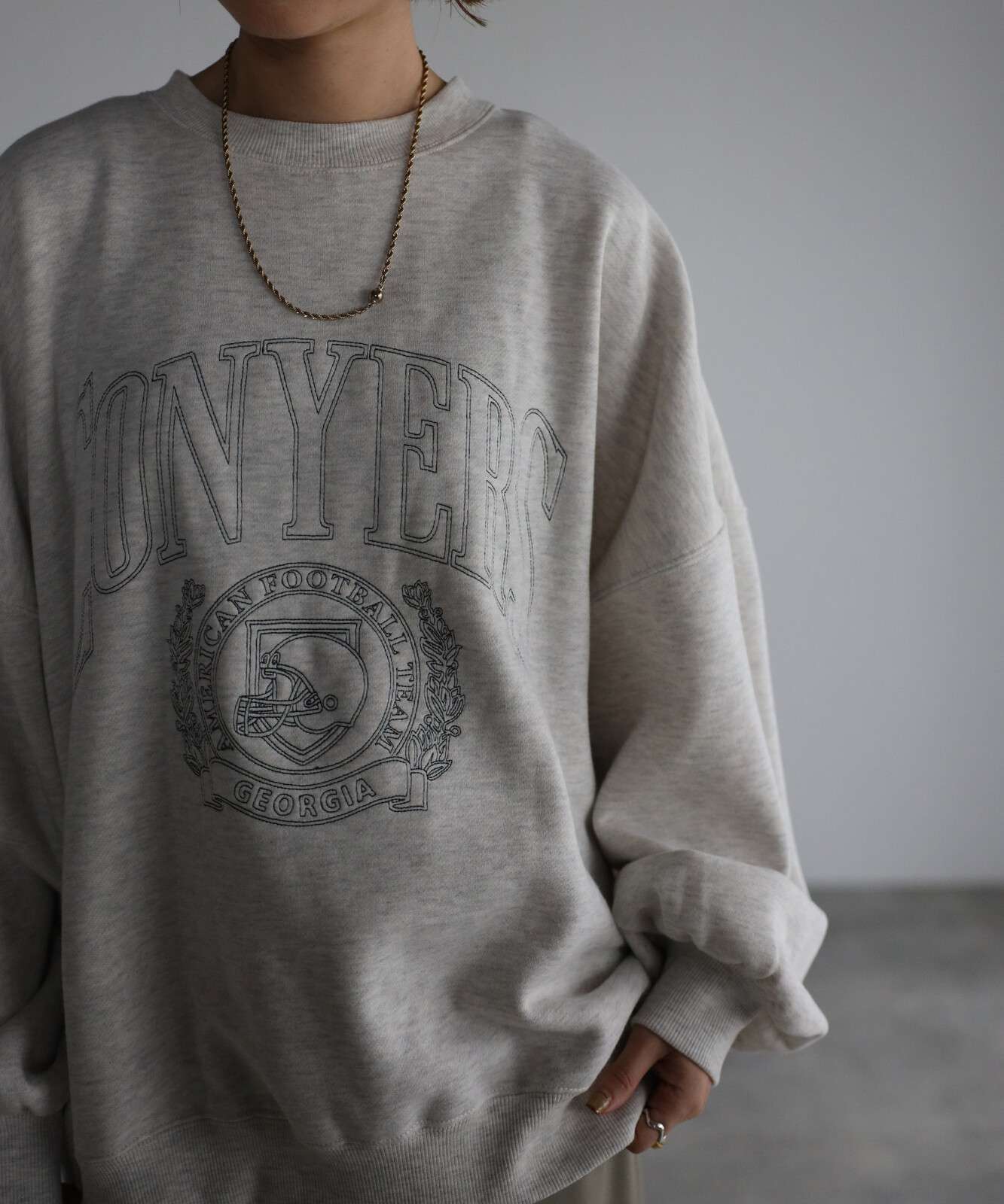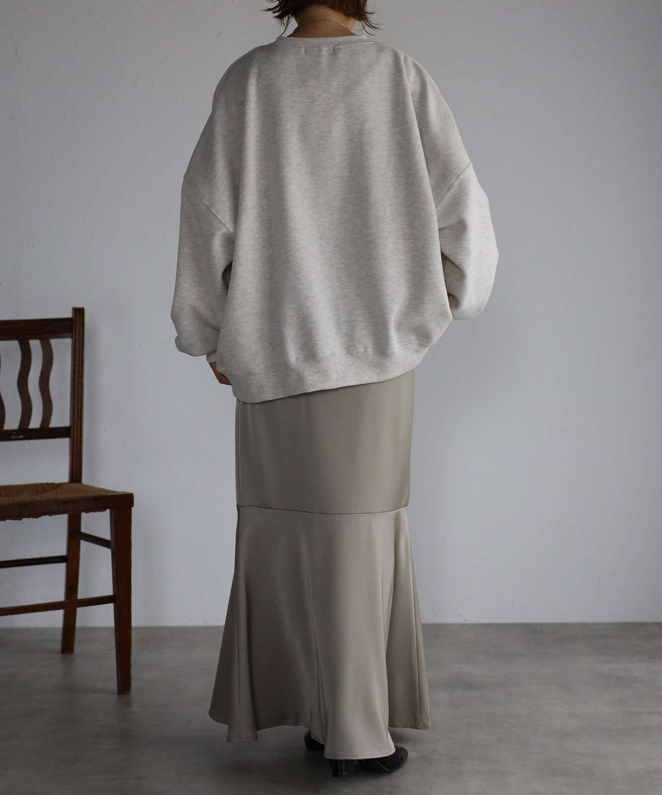 重ね着をしても気にならないゆったり感と、裏起毛で暖かさも抜群。
